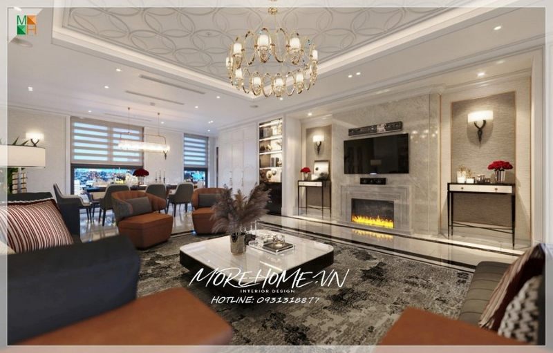 Một mẫu thiết kế phòng khách hiện đại được tạo ra để phù hợp với sự sang trọng, đẳng cấp của biệt thự. Những sắc màu nội thất độc đáo được kết hợp với nhau tạo nên một không gian hài hòa, cuốn hút.